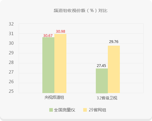 无论是索福瑞全国网,还是29省网,央视频道组都牢牢占据全国 30%以上的收视份额,始终保持在32省级卫视频道之上;中央电视台,可最大程度网罗全国电视人口,促使企业广告覆盖最广泛收视人群,迅速提升品牌知名度