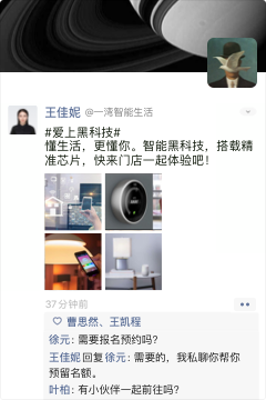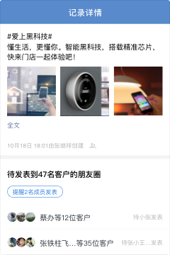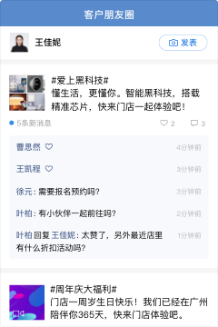 • 01成员可将活动信息、产品动态等内容发表到客户的朋友圈