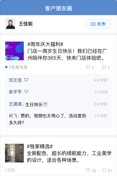 可将活动信息、产品动态、专业知识等内容发表到客户的微信朋友圈,并与客户评论互动