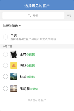 • 03支持按照标签选择可见客户,发表更匹配的内容