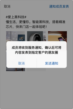 • 01企业可统一创建内容,选择需要展示的客户,成员确认后发表到客户的朋友圈