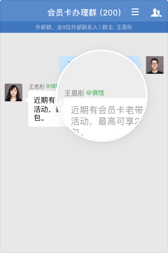• 02企业成员在群里发消息时,会有企业身份的展示