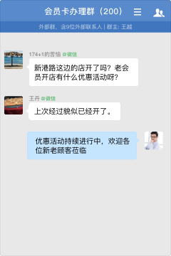 • 01成员可创建包含微信用户的客户群,在群内进行服务