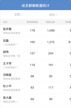 • 04企业可通过群聊数据统计查看客户群数据,掌握成员服务情况